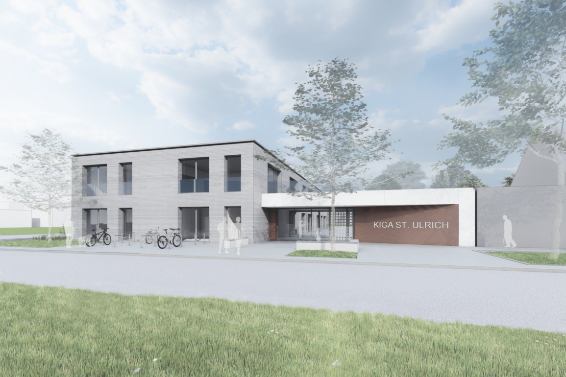 Der Kindergarten wird entsprechend dem aktuellen Raumbedarf umgestaltet, brandschutztechnisch und energetisch saniert. Für eine weitere Krippengruppe wird das Gebäude mit zwei Holzanbauten erweitert.